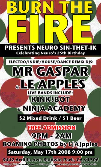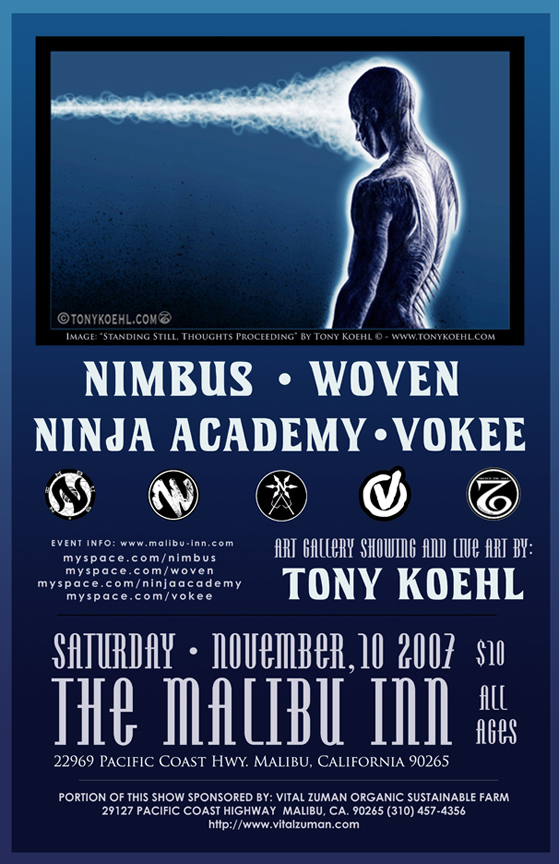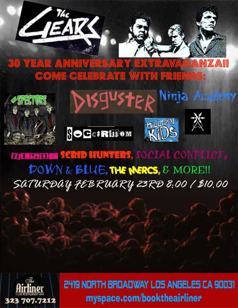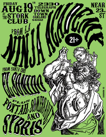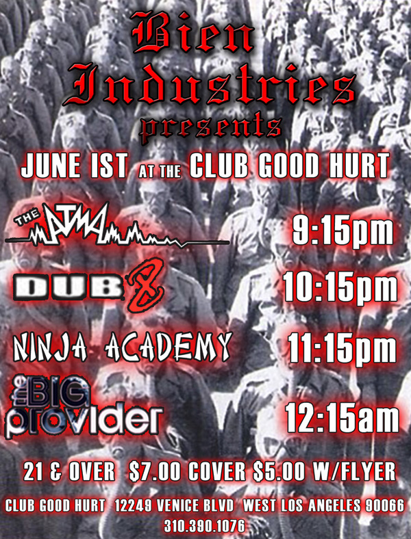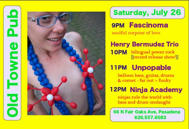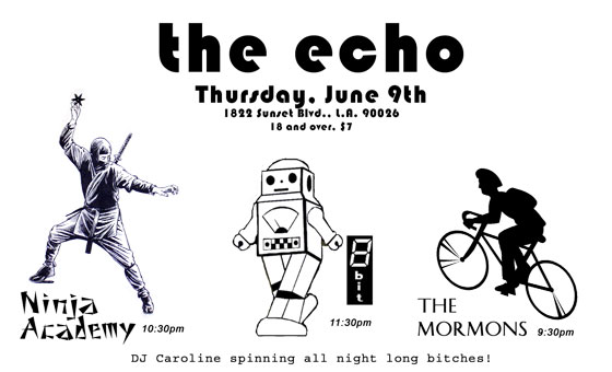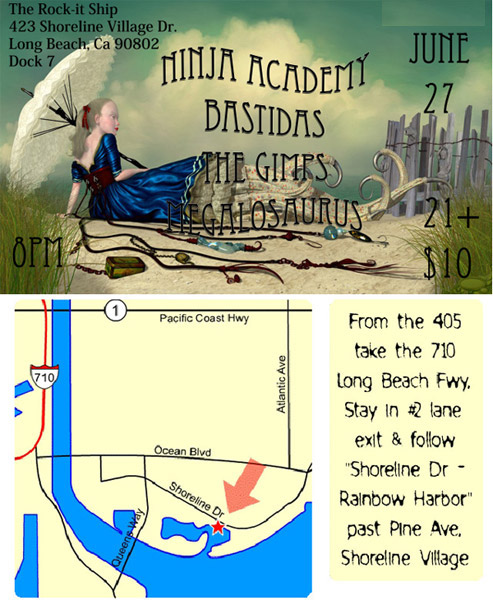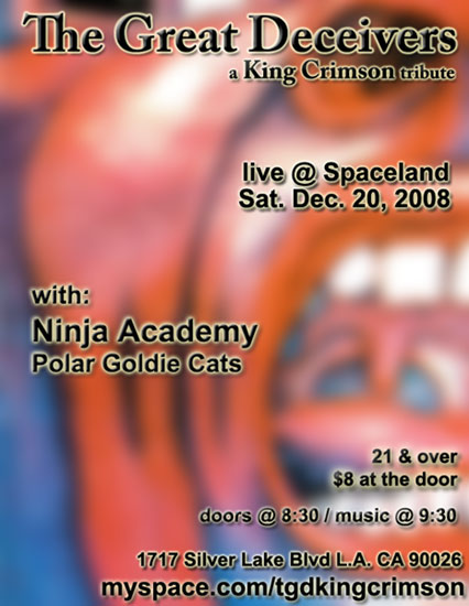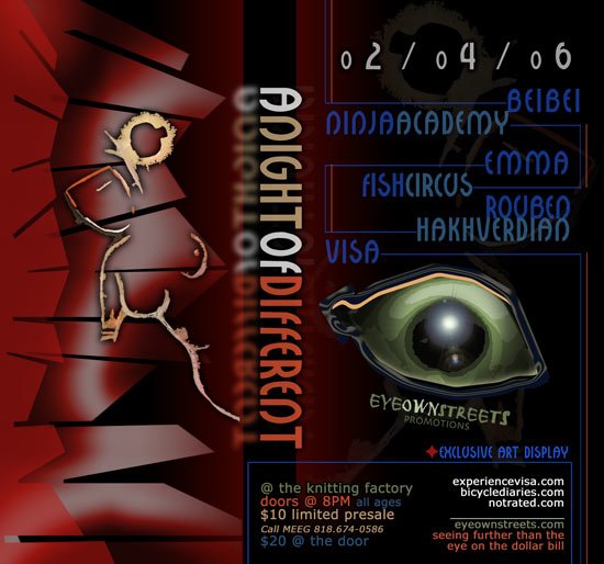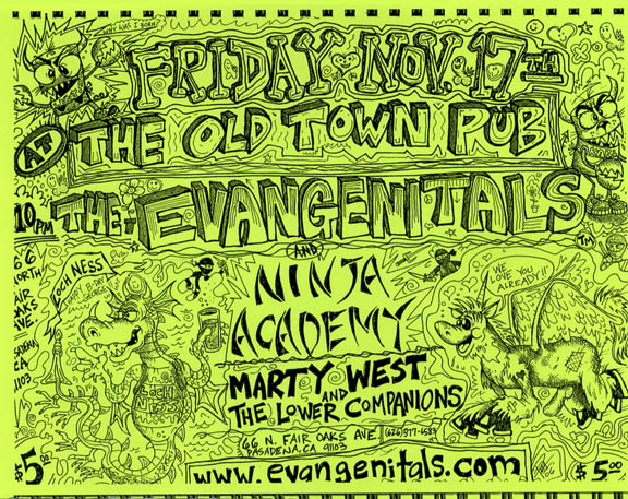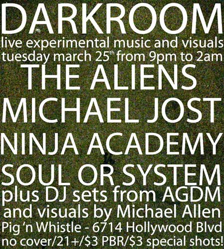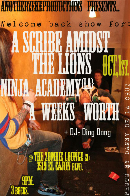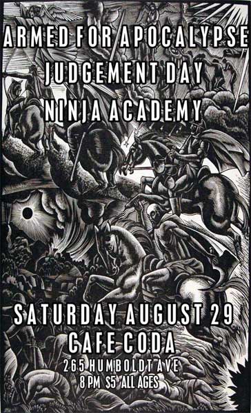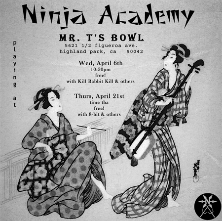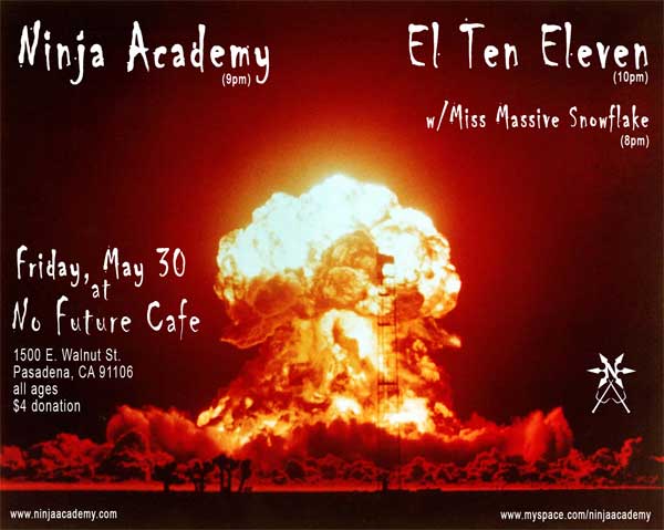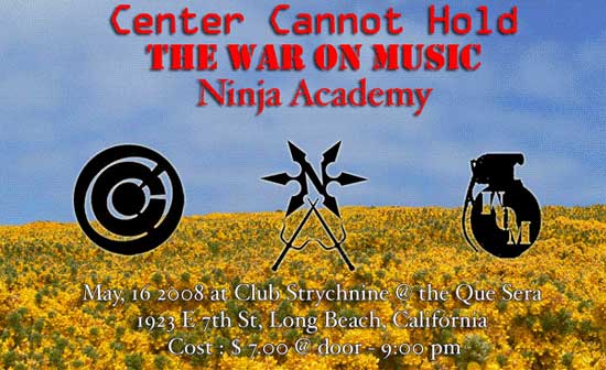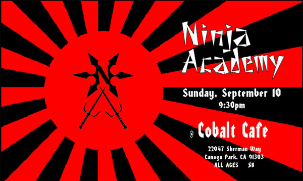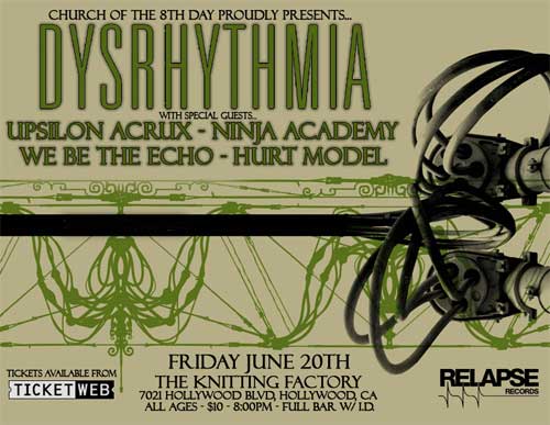 Oedipus, Bolt Thrill Action (flyer) Amor Fati "Communist" party (flyer) Wayne Healy Art Opening Adam Shenkman Comedy Show An Orchestra Cinematic, Six & Julian, Apollo Sol Freddy Diablo & His Victims, The Working Business, Alimah (flyer) We Be The Echo, La Fin Du Monde We Be The Echo, Say Bok Gwai We Be The Echo, Opus Despirdi, Bloody Snowman (flyer) Totally Serious, Witt, Solar Wimp (video) Broken Numbers Band, True Press The Mormons, The Dharma Bums, Kick Rawks We Be The Echo We Be The Echo, Totally Serious, Clevis (flyer) Church of Sexy Jesus, Baby Got Bacteria Shaolin Death Squad, The Better Death Liberate Te Ex Jesse Smith, Panta Rhei Red Team Blue Team, Smooth Tutors Zinc Pony, Skylar King Too Many Zebras, Wyldlife (flyer) The Church of The Snake, Denim Venom (flyer) Goddess is my religion Thief Thief, IttheVerb Mt. St. Helen's Vietman Band co-conspirator, Juanita and the Rabbit Charles the Osprey, Night Toucher Imaginary Friends, Caleb McCouch Bury My Teeth, Yeti vs. Yeti, Meah! (flyer) on-air performance in Spazztick Nature Walk Medicine Theory, Hip Shot Killers (flyer) Antique Scream Revolt Revolt, Mere Cat (flyer) Treetarantula, Austenitic Cull Gardening Not Architecture, Gavin Castleton, Ben Henderson 7" vinyl release w/Totally Serious, Golden Buddha, That Noise Judgement Day, Armed for Apocalypse (flyer) Judgement Day, Prids, Anon Remora, Cleveland Browns A Louder Disaster!, Junkface, We Should Be Dead Intransit Audio (flyer) Mormons, Dharma Bums, Stab City (flyer) Golden Buddha, Sugarbitch, String Theory, Splotch (flyer) Golden Buddha, Michael Jost's guitar (flyer) Judgement Day (flyer) Judgement Day Random Ninjas, Oh No Ninjas, Nam Ninja (flyer) Megalosaurus, The Gimps, Bastidas (flyer) Skateshop Showcase w/Brevi, Vesuvia Sonic Blastoids, David Liebe Hart and Adam Papagan Unpopable, Henry Burmudez Trio, The Drum Men Totally Serious, Clevis, Cinderella Motel mirrikkah, As Am I, Re-Write Dept., Mob Zombie Fourfivesix The Shifts, Broken Bottle Blues Band, Live Sound Fourfivesix, Fireworks The Triggermen Bastardos de Sancho, Street Hassle The Unreal DJs: Dorian, Fingerprince, Local Motion Satin Gum, Casino Bulldogs Zinc Pony, The March Hare, Spectral Empire, The G Ribbons The Dossier It the Verb, 14 foot 1, Hangman's Alphabet (flyer) The Mission Impossible of... Crush The Junta, Stone Baby Beardo Bandini (flyer) Cowboy Messiah, Superdot (flyer) El Ten Eleven, Metavari The Phoenix Lights Peace by Punching, Boreal Hills many bands MC Untytled RevoltRevolt Junkface, Dudes of Chaos Treetarantula, I'm a Gun (flyer) Black Delany, Tullis Mute Socialite, Say Bok Gwai Godstomper, others Memory Engine Junius, Beware of Safety performance and interview Technology, Copperthief (flyer) 4-year anniversary show Weatherground, Swamphouse ArtNight 2009 Hip Hop Benefit for Darfur (flyer) Restavrant, Glock Und Spiel Mo Bigsley Mostly Bears Mostly Bears, Colorstore Mostly Bears, Colorstore (flyer) (flyer) Totally Serious, We Be The Echo, Clevis, Good For Cows (flyer) Holding on to Sound, Mob Zombie & more (flyer) Mike Watt & the Secondmen, Marshweed, Death Punch (video) The Evangenitals, Beeters, Hello from Reno, Boxviolet (flyer) The Great Deceivers, Polar Goldie Cats, (flyer) Woven (CD release), That Noise (flyer) Asian Heritage Festival, hosted by KTLA killradio.org The Mormons, 8-bit, The Bolides, Midway (flyer) check flyer for list of bands (flyer) check flyer for list of bands (flyer) Fashzaji and others Mode Unpopable, Henry Bermudez Trio (flyer) That Noise, Beatnik Jr., The Booty Party Dysrhythmia, Upsilon Acrux, We Be The Echo, Hurt Model (flyer) Upsilon Acrux, Howl (flyer) The Mormons, The Beeters, Killer Dreamer (flyer) El Ten Eleven, Miss Massive Snowflake (flyer) Woven Surrender The Pink, Mahi Gato, Venona (flyer) Center Cannot Hold, The War On Music (flyer) Aztlan Underground, The Mystery Hangup, Geronimo (flyer) We Be The Echo, Hey Three Eyes (flyer) In-store performance Judgement Day, Desa, Build Us Airplanes, Oh No Joe (flyer) We Be The Echo, Totally Serious, Fkenal (flyer) We Be The Echo, Totally Serious, Lifeless Animation (flyer) KROQ night w/The Eye Podz Clevis, Howl (flyer) Lonely Joe Gets Shotgun, TMTMP, Souls A Fuse, The Rising Vibes Michael Cho Benefit w/Tremellow & many others (flyer) The Aliens, Michael Jost, Soul Or System (flyer) Tera Melos, El Ten Eleven, Big Moves Piel, Buddy Akai Piel, Buddy Akai Piel, Buddy Akai 400 Blows, Die Princess Die, Chinese Stars (flyer) Donita Sparks (CD release), 400 Blows (flyer) The Gears, Disguster & many more (flyer) Mahi Gato Apex Theory, Arto Tuncboyaciyan, Chameleon Conductor (flyer) Nels Cline Singers, Eugene Chadbourne, The Mentones Masterslave, Lady Sinatra (flyer) Piel Nimbus, Woven, Vokee (flyer) Free Moral Agents, Tremellow, The Action Design (flyer) AIDS Benefit show (Artist appreciation night) (flyer) That Noise, Paper Pills, We Be The Echo We Be The Echo, The Deluge, Lifeless Animation El Ten Eleven, Parsley Flakes Shrimp Foxy Autopsy, The Trixies The Janitor, The Sirens, The Mormons The Deluge Center Cannot Hold, Anthony Shadduck, The Deluge, The Vageniuses Die Die Die, HEALTH, The Valley Arena Henry Bermudez, The Invisible Plan, Batman vs. Predator Batman vs. Predator, Masterslave, Lamexcuse Mongoloid, Bike Fight, Helper Monkey & more East/West Quintet, pb&j...and g, Roboto Love Haru Kuroi (record release) Balloon Bass, Imagine"the"Band, these orphaned eyes Dave Culwell Trio, Trio Formaggio, Nick Rosen Trio Polygraph, Michael Jost, Iron Mtn. Monster Truck Station Wagon, The Aliens, Echoes of a Boundless Life 400 Blows, Horace Weintraub (flyer) Gravy Train, Groovy Ghoulies, Floating Corpses & others (flyer) We Be The Echo, Featherweight Champion of the World D.P.'s last show w/ 8-bit, The Mormons, We Be The Echo (flyer 1,2) 1-year Instrumental Night anniversary w/ Clevis, Sybil 8-bit (CD release), The Mormons, Bodies of Water, Seasons Dream Sequence, Solace (flyer) Please Don't Throw Rocks At Us Juan The Mannequin, Alsoran